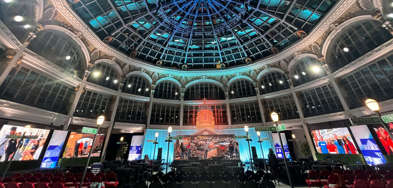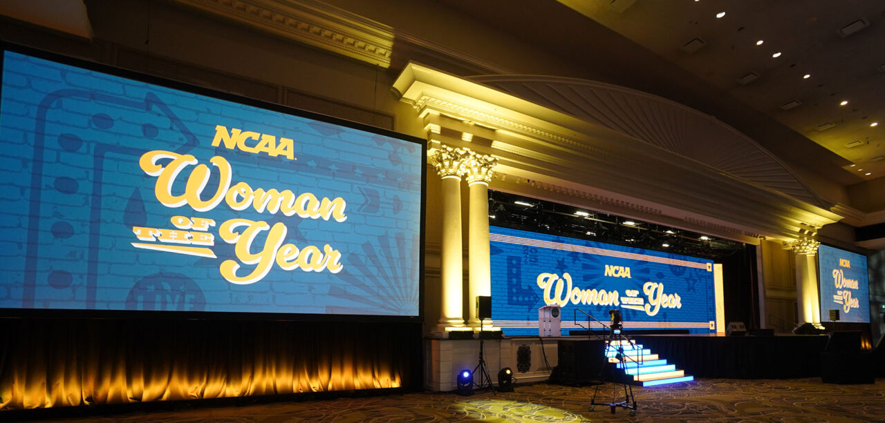 - Why it works: Texture adds a tactile, premium feel to the space. It moves the event away from a “broadcast” look and toward a high-end “hospitality” experience.